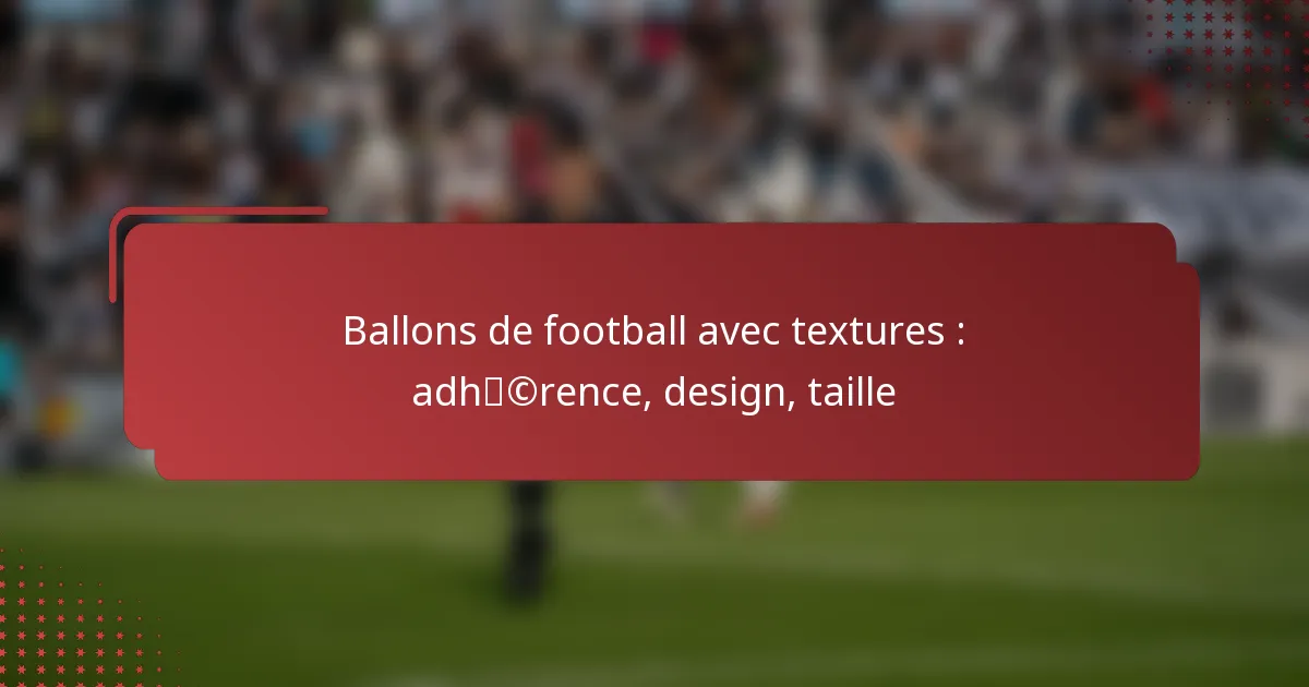 Différentes textures peuvent convenir à diverses conditions de jeu. Par exemple, une surface plus rugueuse peut être bénéfique par temps humide, tandis qu’une texture plus lisse pourrait être préférée sur des terrains secs. Les joueurs doivent tenir compte de leur environnement d’entraînement typique lors du choix d’un ballon de football.