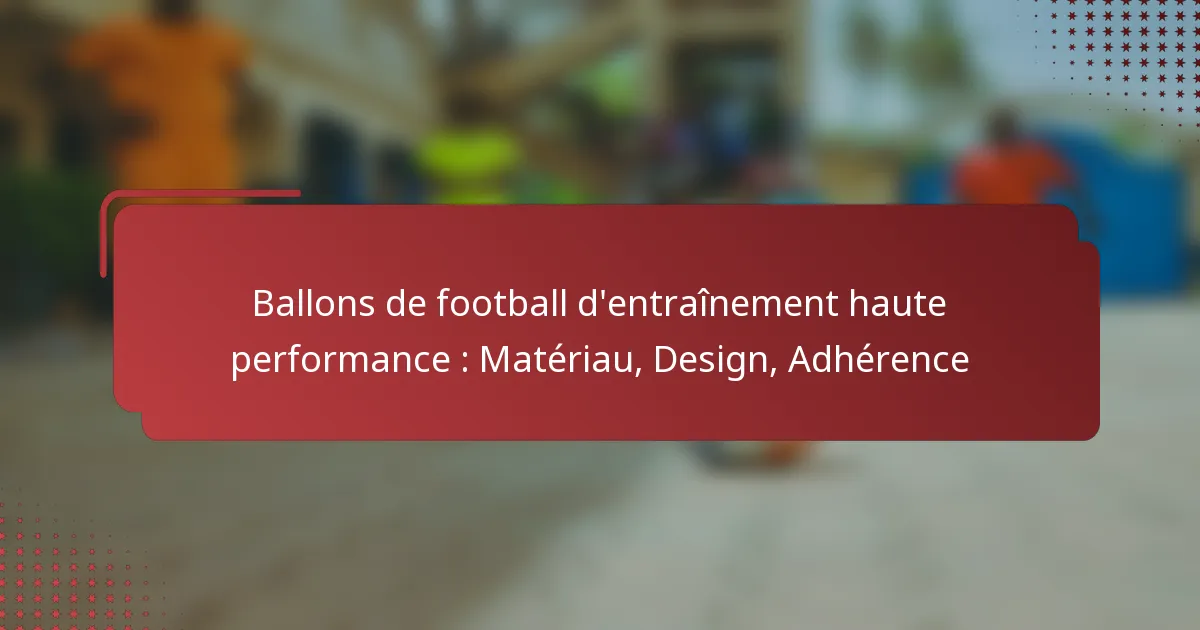 Les ballons de football d’entraînement haute performance varient en fonction du niveau de compétence, avec des recommandations spécifiques pour les débutants et les joueurs intermédiaires. Choisir le bon ballon peut améliorer l’efficacité de l’entraînement et améliorer le jeu global.