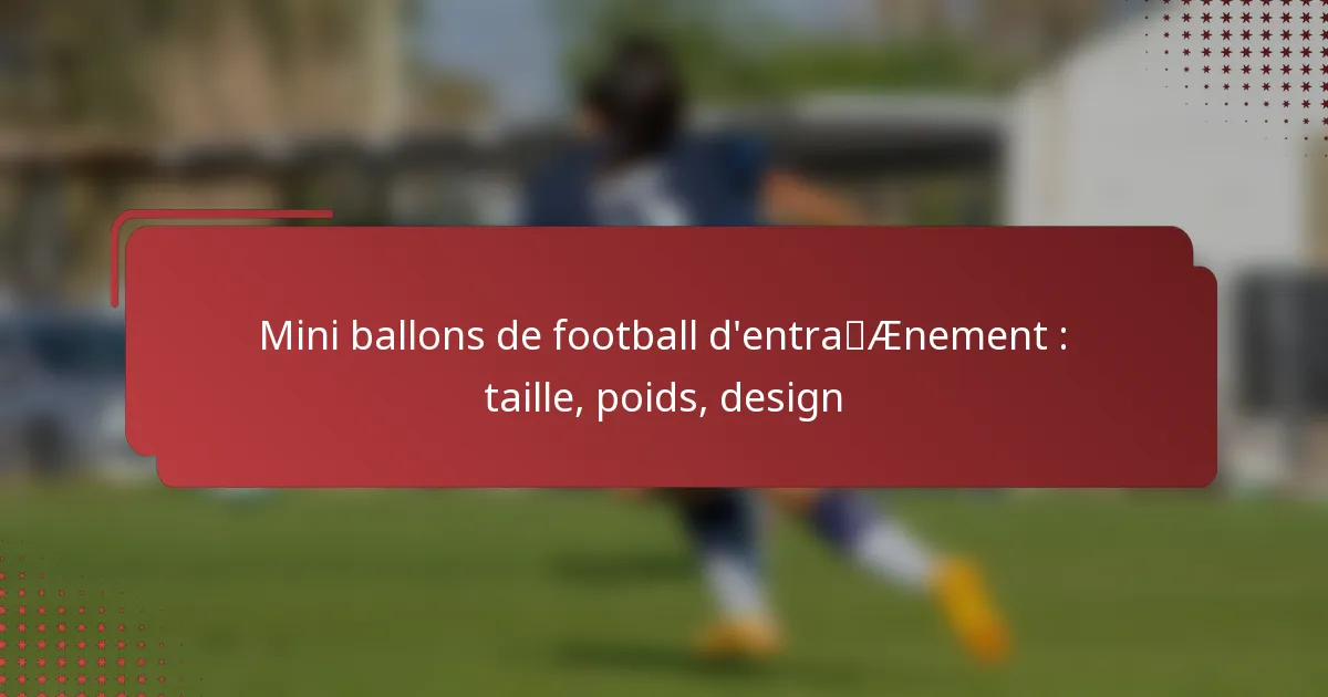 Les ballons de football d’entraînement mini sont spécialement conçus pour les jeunes joueurs, offrant une alternative plus petite et plus légère aux ballons standard. Pesant entre 250 et 300 grammes, ils favorisent un meilleur contrôle et une meilleure manipulation, essentiels pour le développement des compétences. Lors du choix d’un ballon d’entraînement mini, il est important de prendre en compte des facteurs tels que la taille, le poids et le matériau pour améliorer les performances et la durabilité lors des séances d’entraînement.