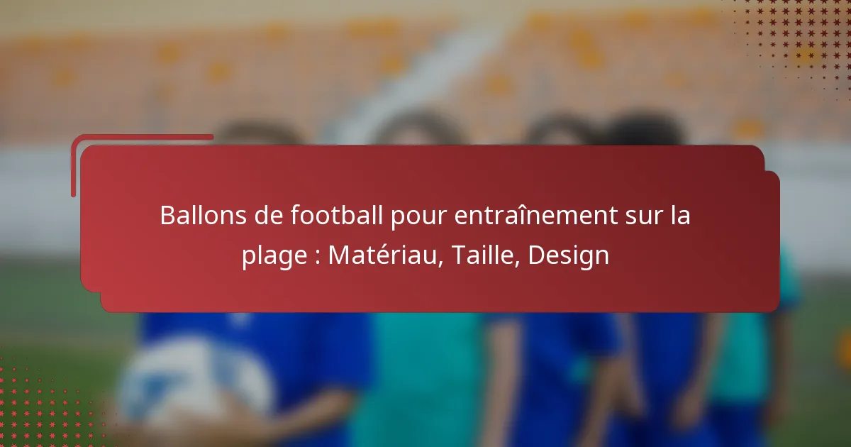 Les ballons de football d’entraînement en extérieur sont conçus avec des caractéristiques spécifiques qui améliorent leur performance dans diverses conditions météorologiques, des tailles adaptées à différents groupes d’âge et une durabilité pour une utilisation prolongée. Comprendre ces caractéristiques clés aide les joueurs et les entraîneurs à sélectionner le bon ballon pour un entraînement efficace.