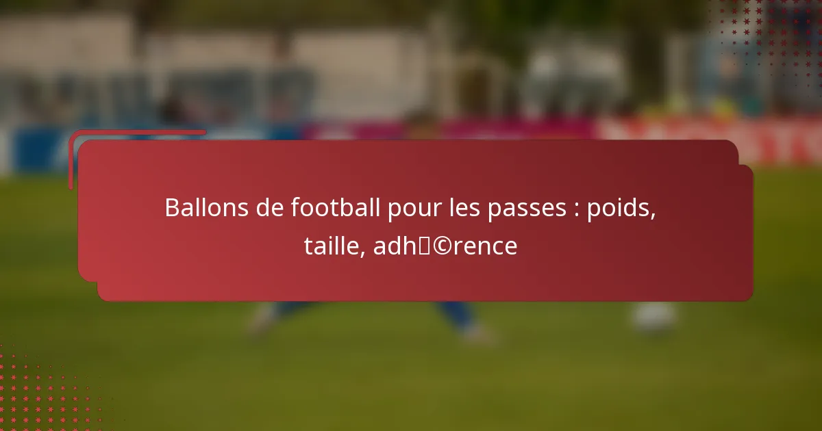 Les ballons de football conçus pour les passes se concentrent sur des attributs tels que le poids, la taille, la prise et l’adéquation à différents niveaux de compétence. Ces facteurs influencent considérablement la précision des passes et la manipulation du ballon, rendant essentiel le choix du bon ballon pour une performance optimale.