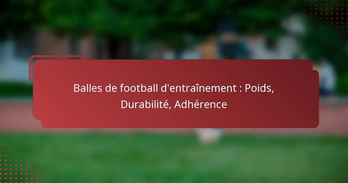 L’adhérence des ballons de football d’entraînement est influencée par la texture de surface, les matériaux utilisés et comment ces éléments affectent le contrôle du ballon pendant le jeu. Comprendre ces facteurs peut aider les joueurs à sélectionner le bon ballon pour leurs besoins d’entraînement, améliorant ainsi la performance en dribble, passe et tir.
